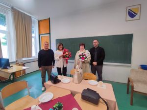 Direktor škole, Mernes Jusufbasić te prof. Esmir Ćatić našim penzionerkama uručili su prigodne poklone.